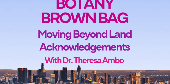 Join us on Monday, April 13 from 12-1 pm at La Kretz Garden Pavilion for another installment of Botany Brown Bag. Dr. Theresa Ambo will give a talk titled “Moving Beyond Land Acknowledgements.”